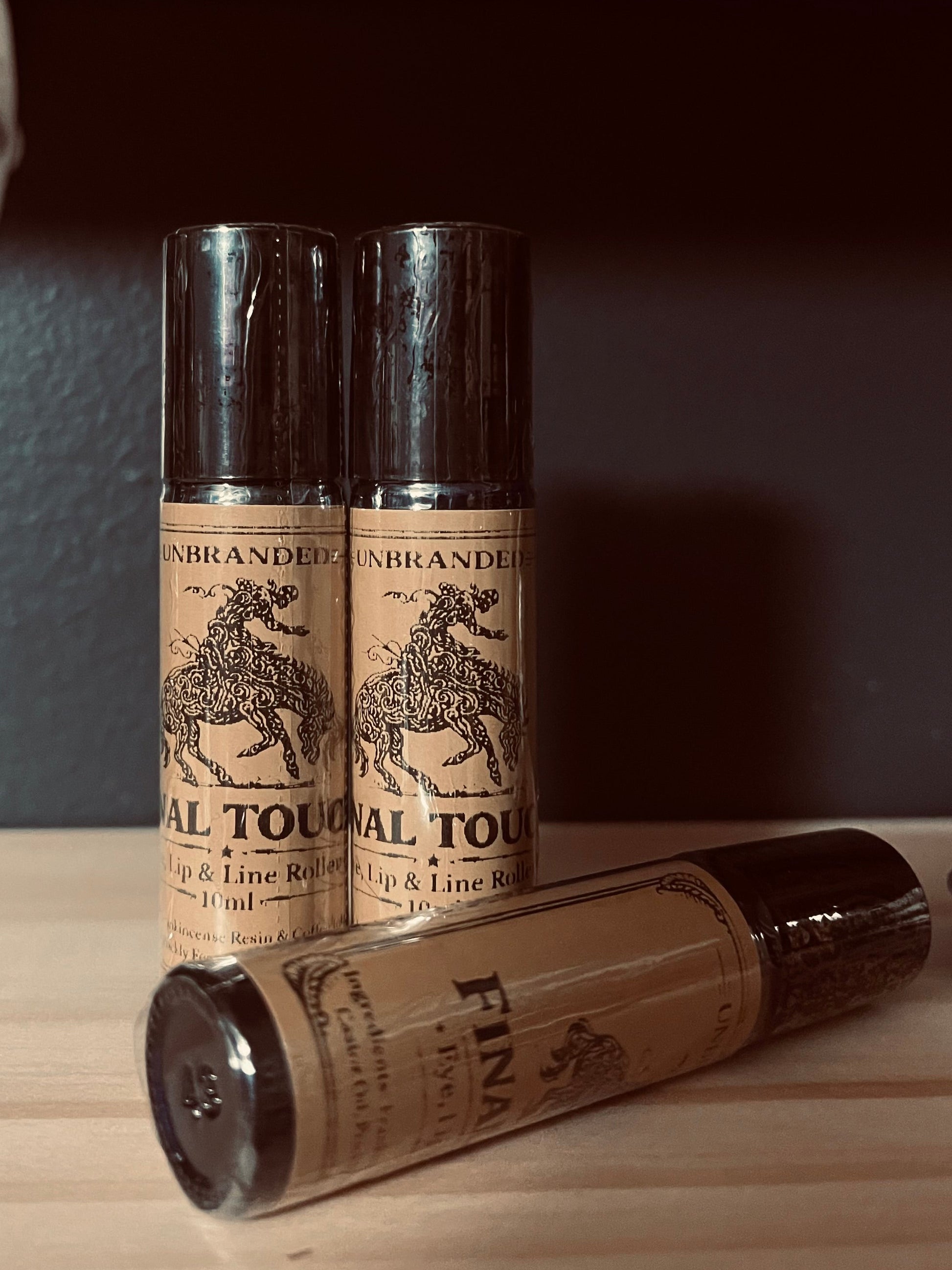 Final Touch is a small-batch, multi-use roller made with coffee-infused oil and frankincense tears, designed for the delicate eye area, lips, and anywhere fine lines tend to show. Lightweight, fast-absorbing, and deeply nourishing, it delivers targeted care without heaviness or shine.
